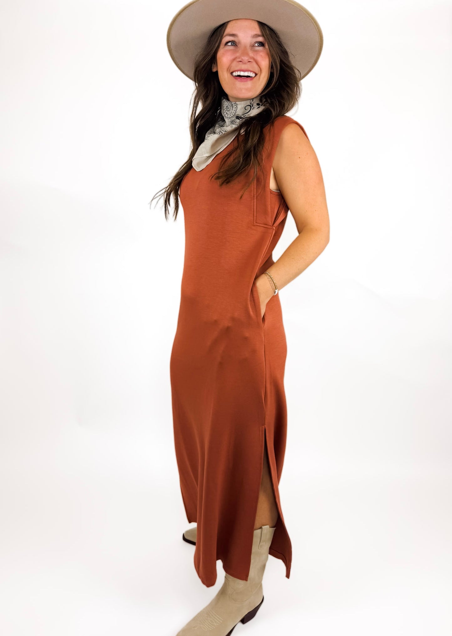 The imogen dress is a knit staple that you’ll wear year around. Pockets, comfy fabric and a perfect color - what’s not to love? Dress it up or dress it down, the imogen dress is so easy to style!