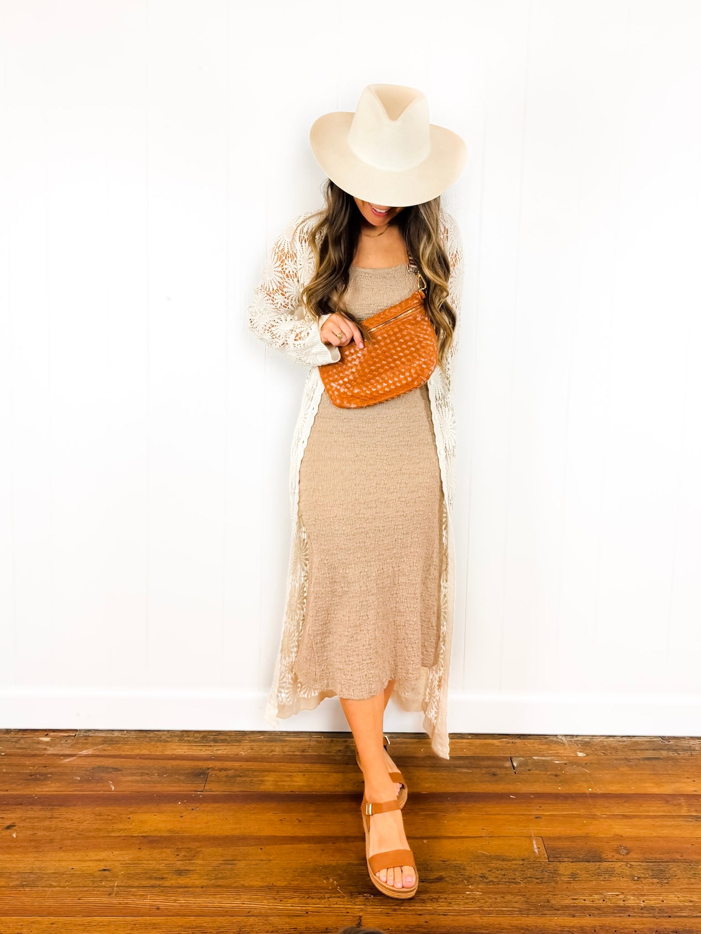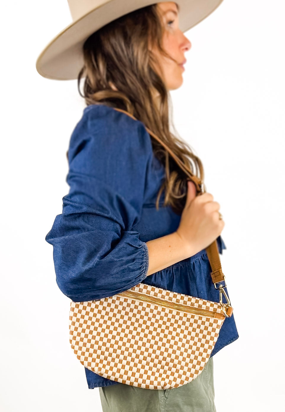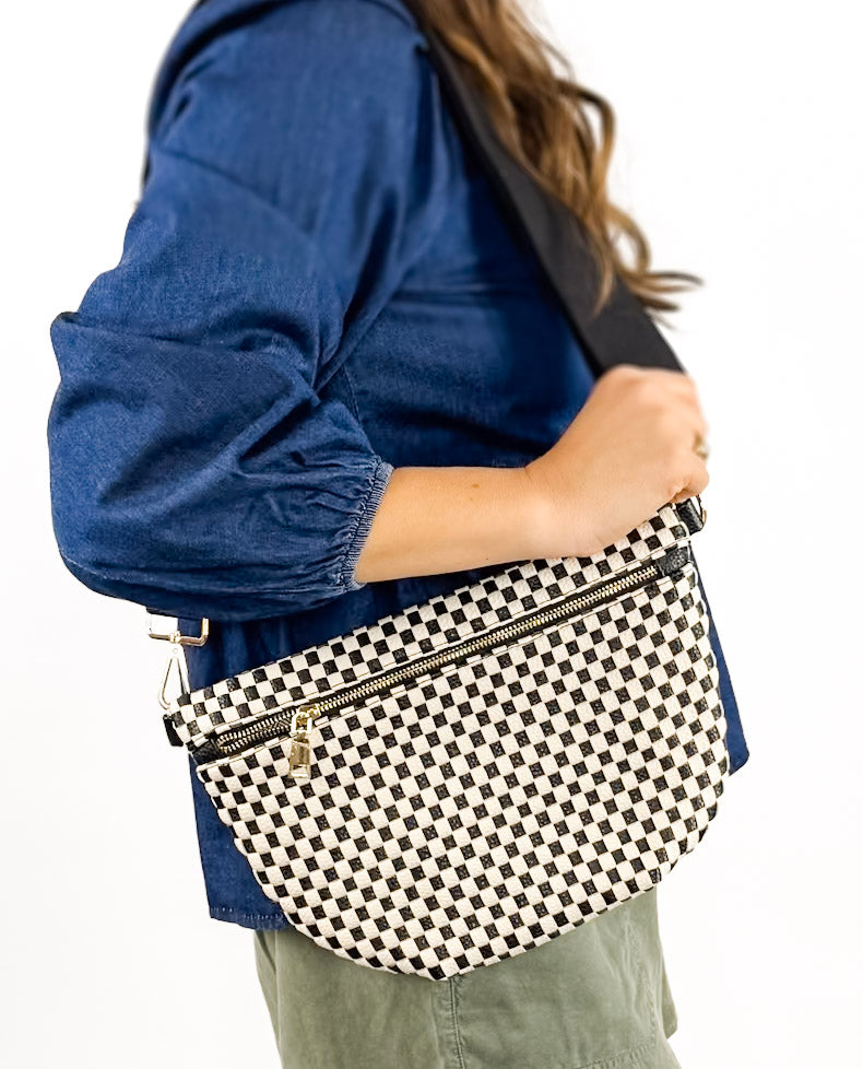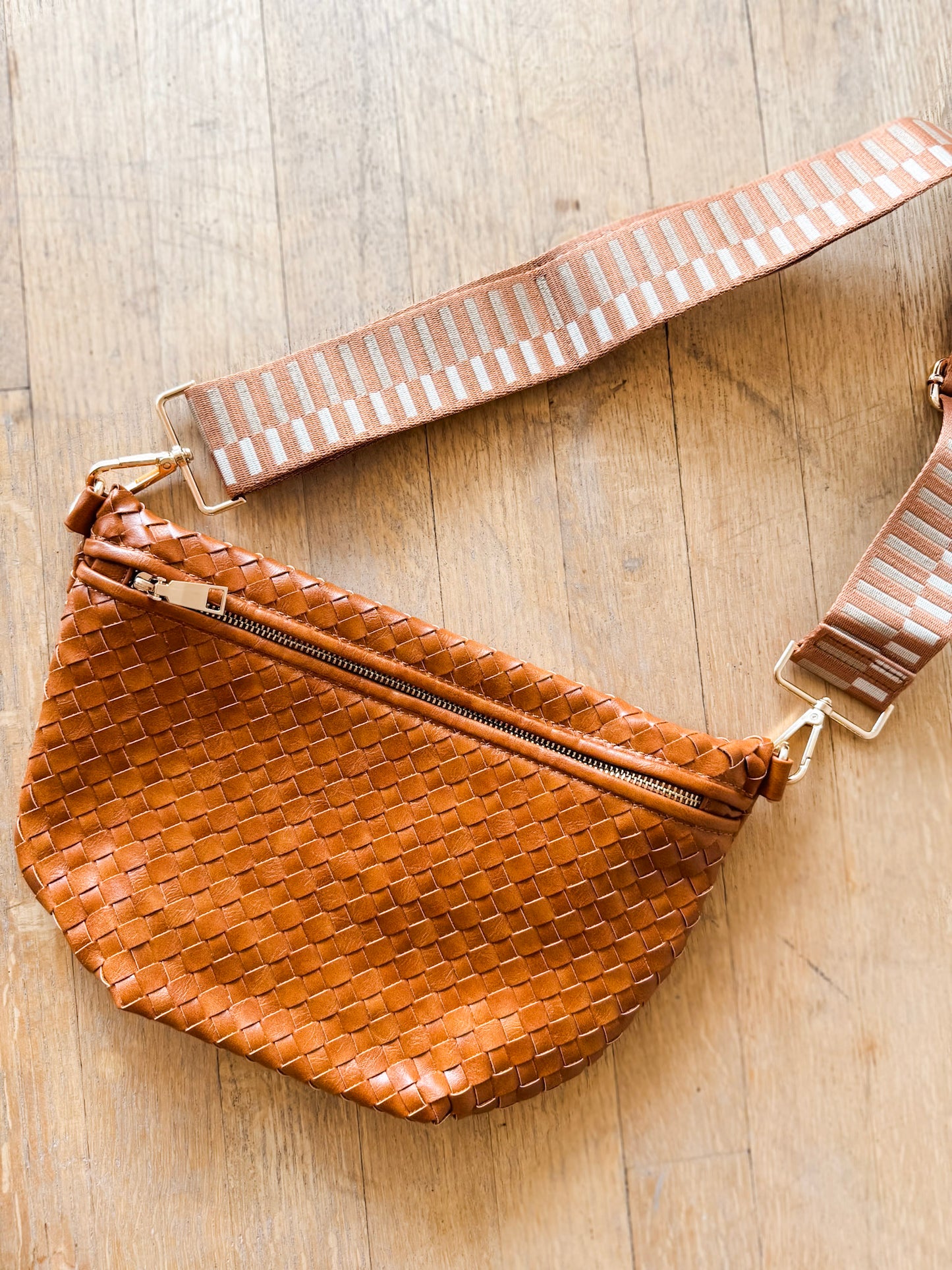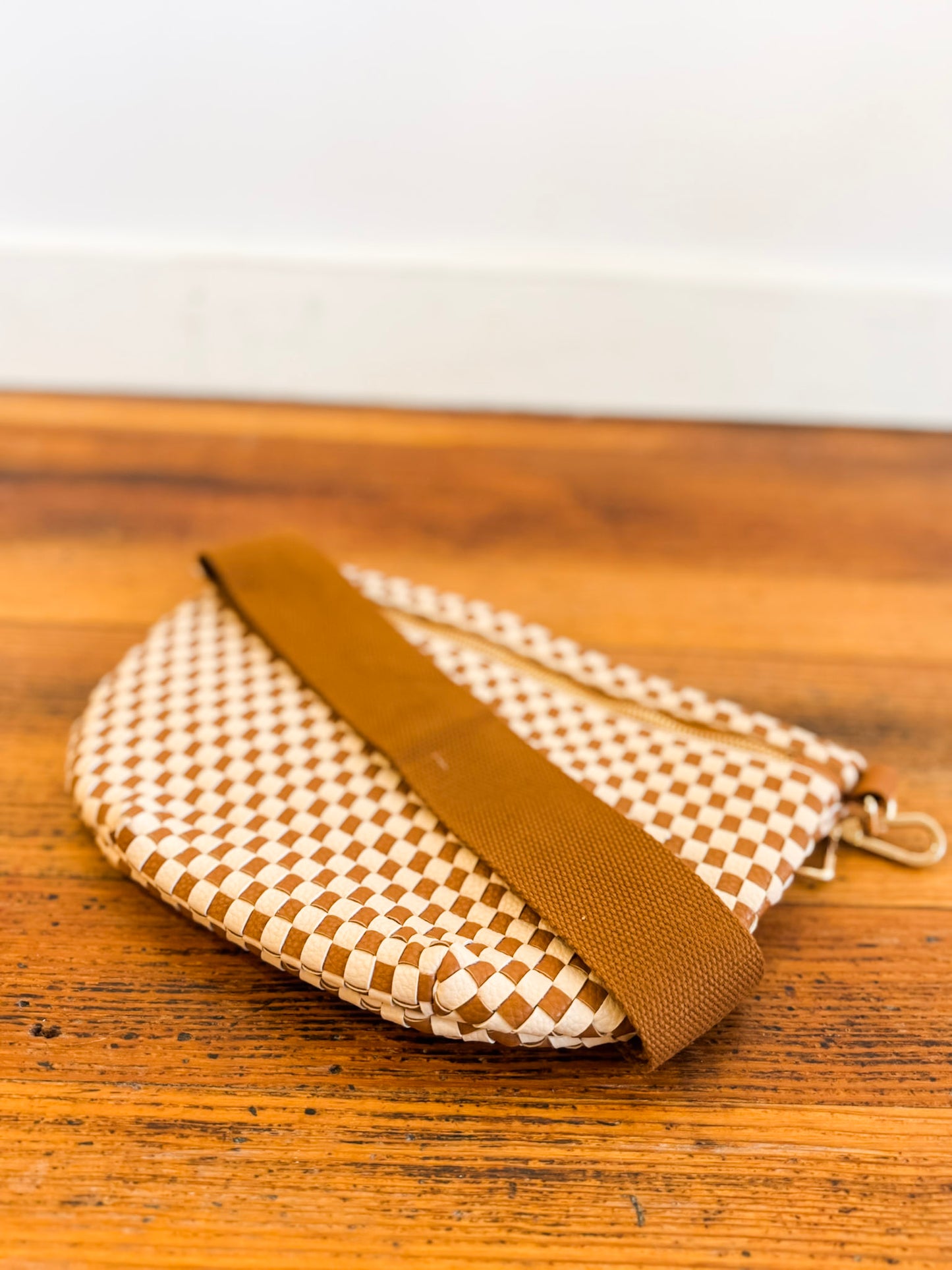 Add Woven Crossbody Bag (Tan Checkered) to the cart