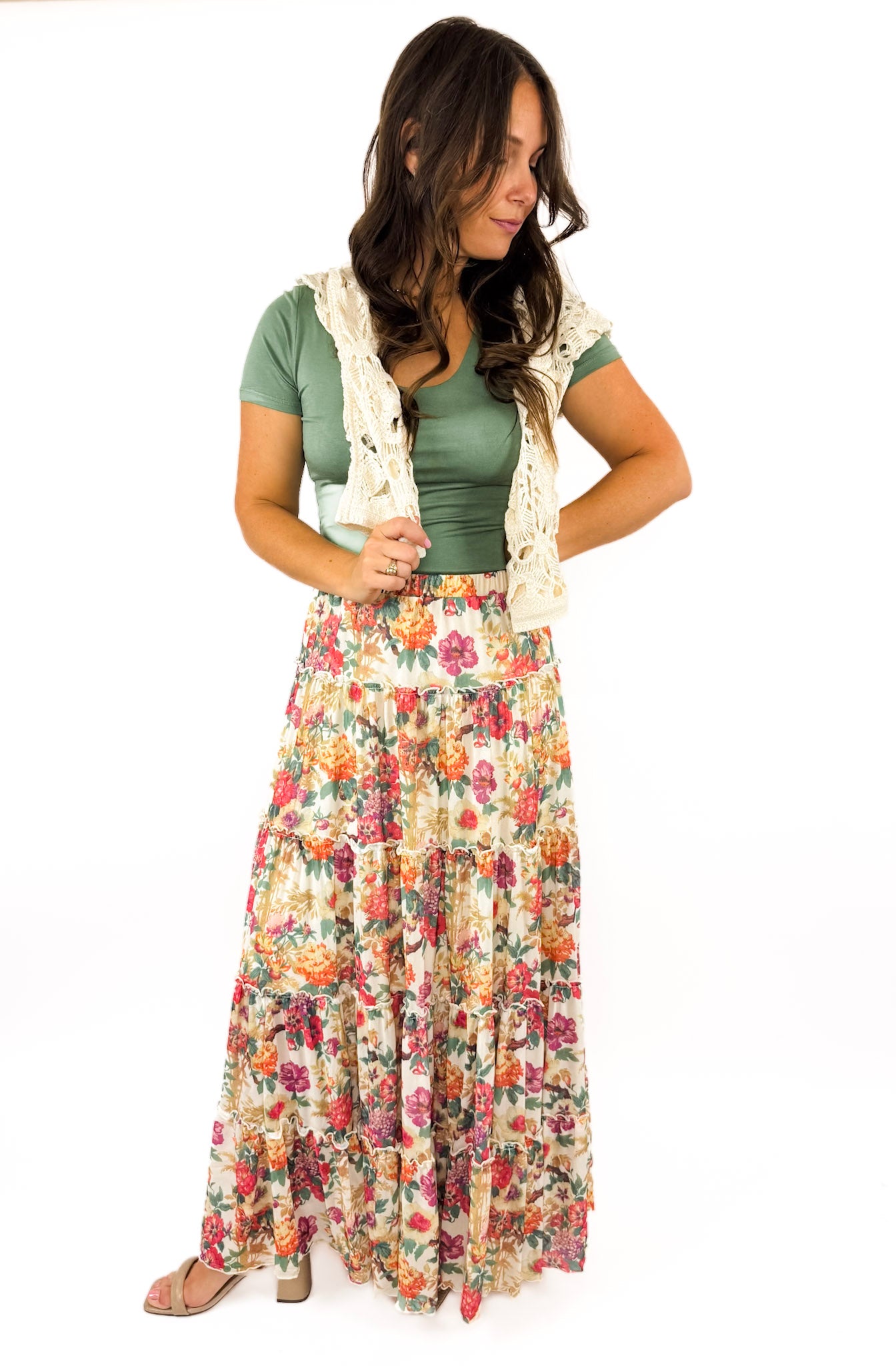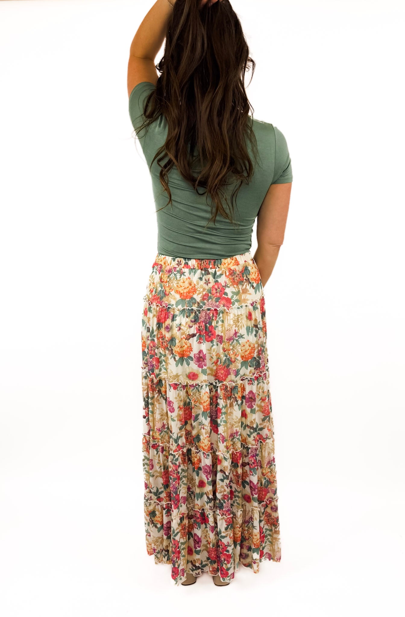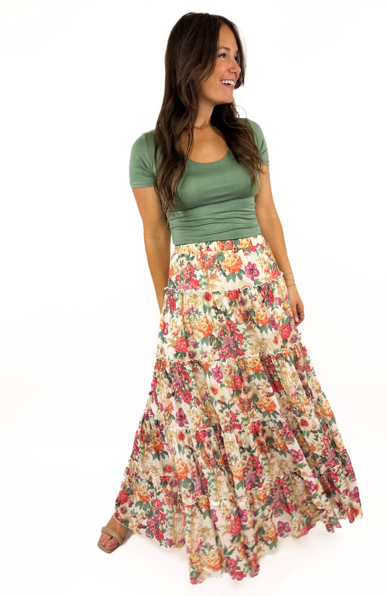 styled with farrah heel ((these green favorite tees are available in store!))