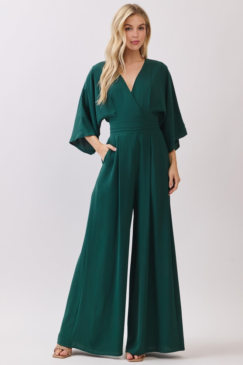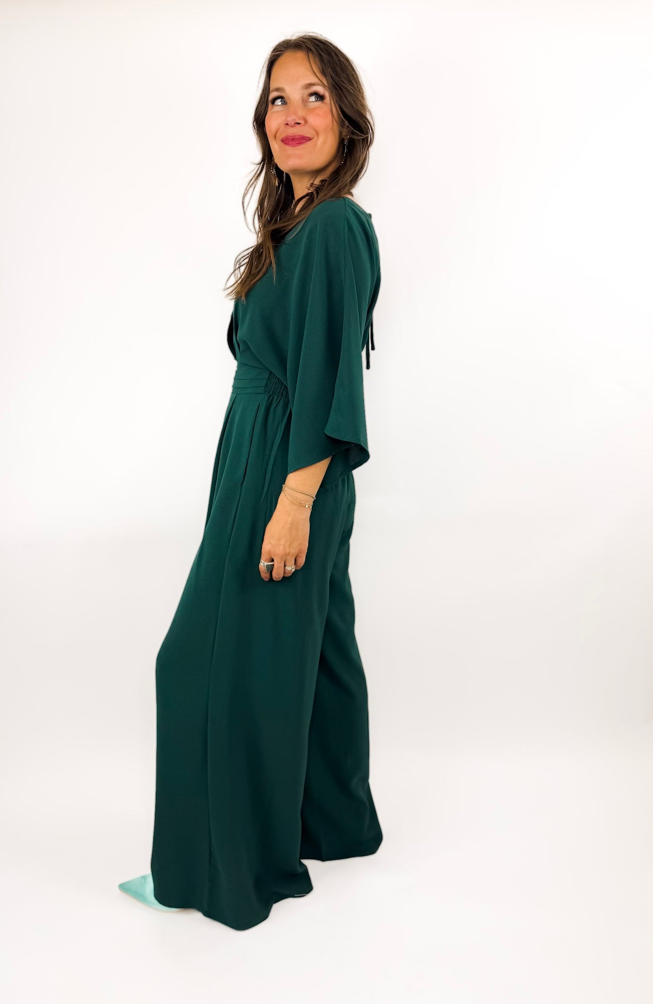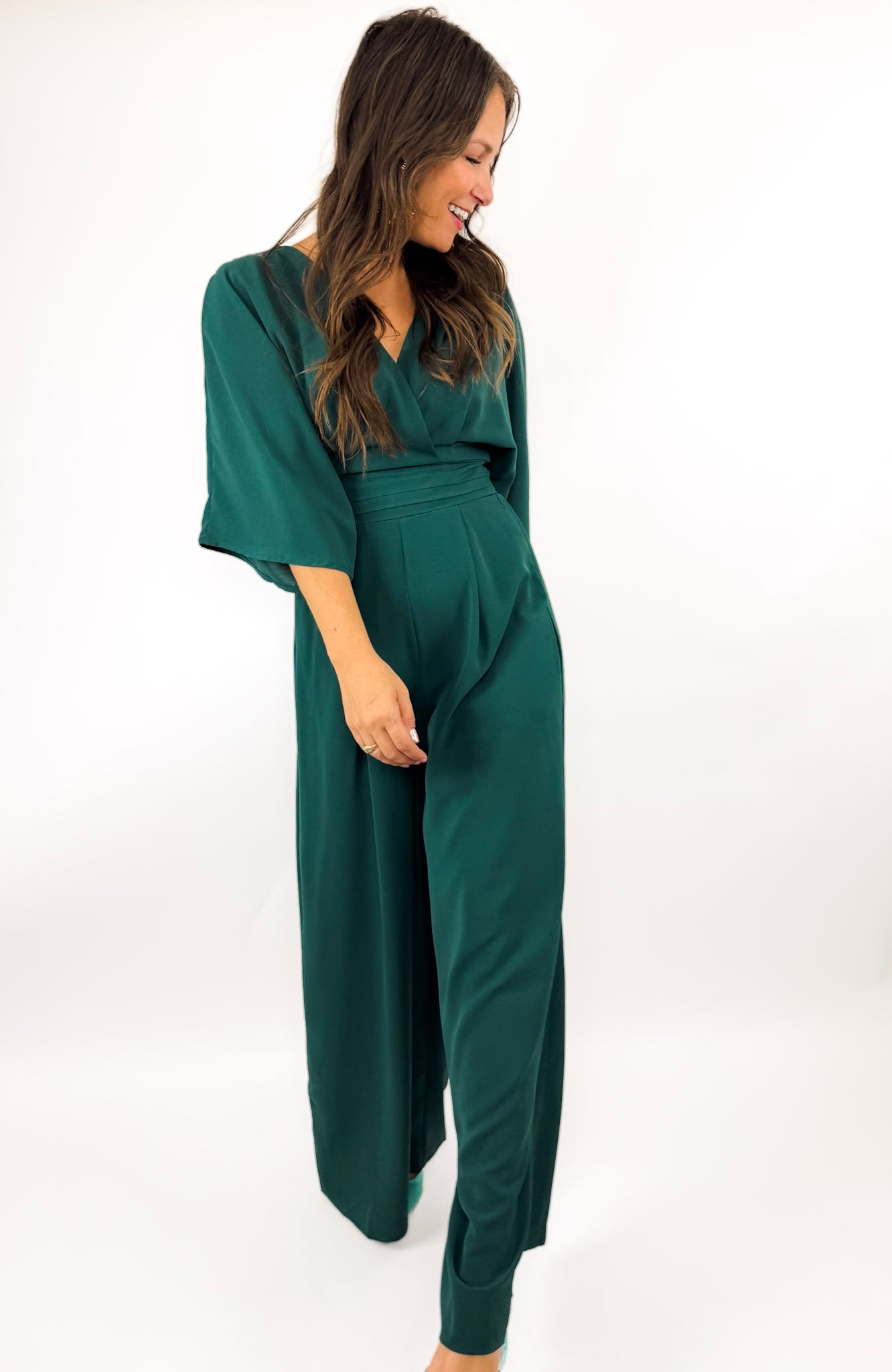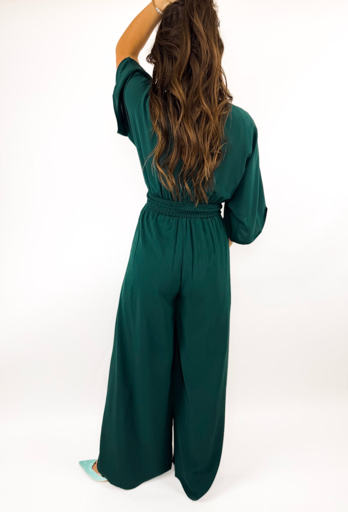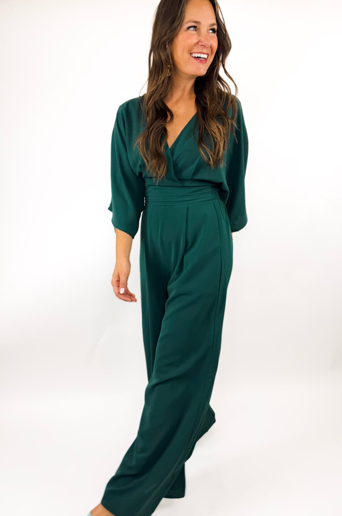 A lovely jumpsuit that is flattering and fun. It's luxe and can be dressed up or down so easily. Available in black, wine, and emerald.