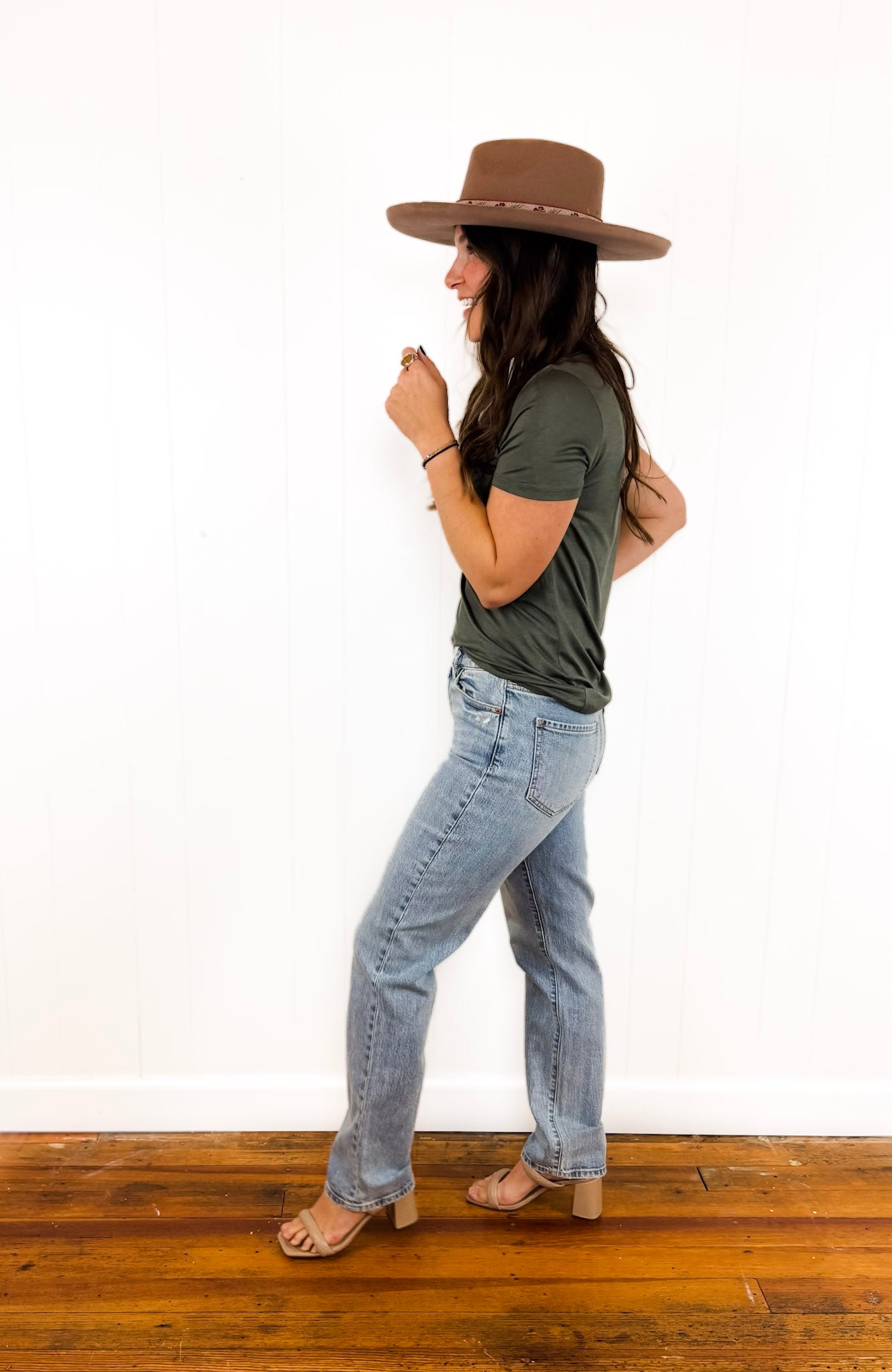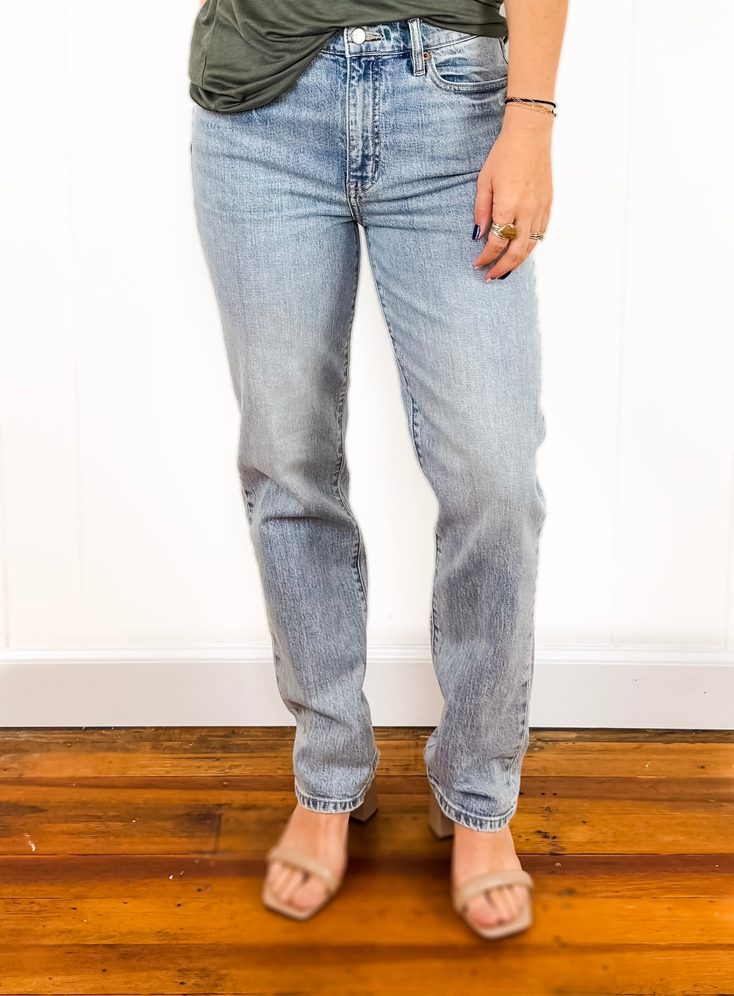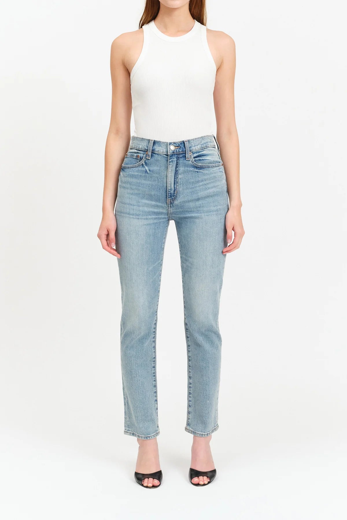 The Smarty Pants in Wink is a tried-and-true high rise slim fit jean. With its timeless light wash, clean hems, and close fit, this polished pair is perfect for your day-to-day. It's made of our Just Right Fabric, with the perfect mix of rigid and stretch.