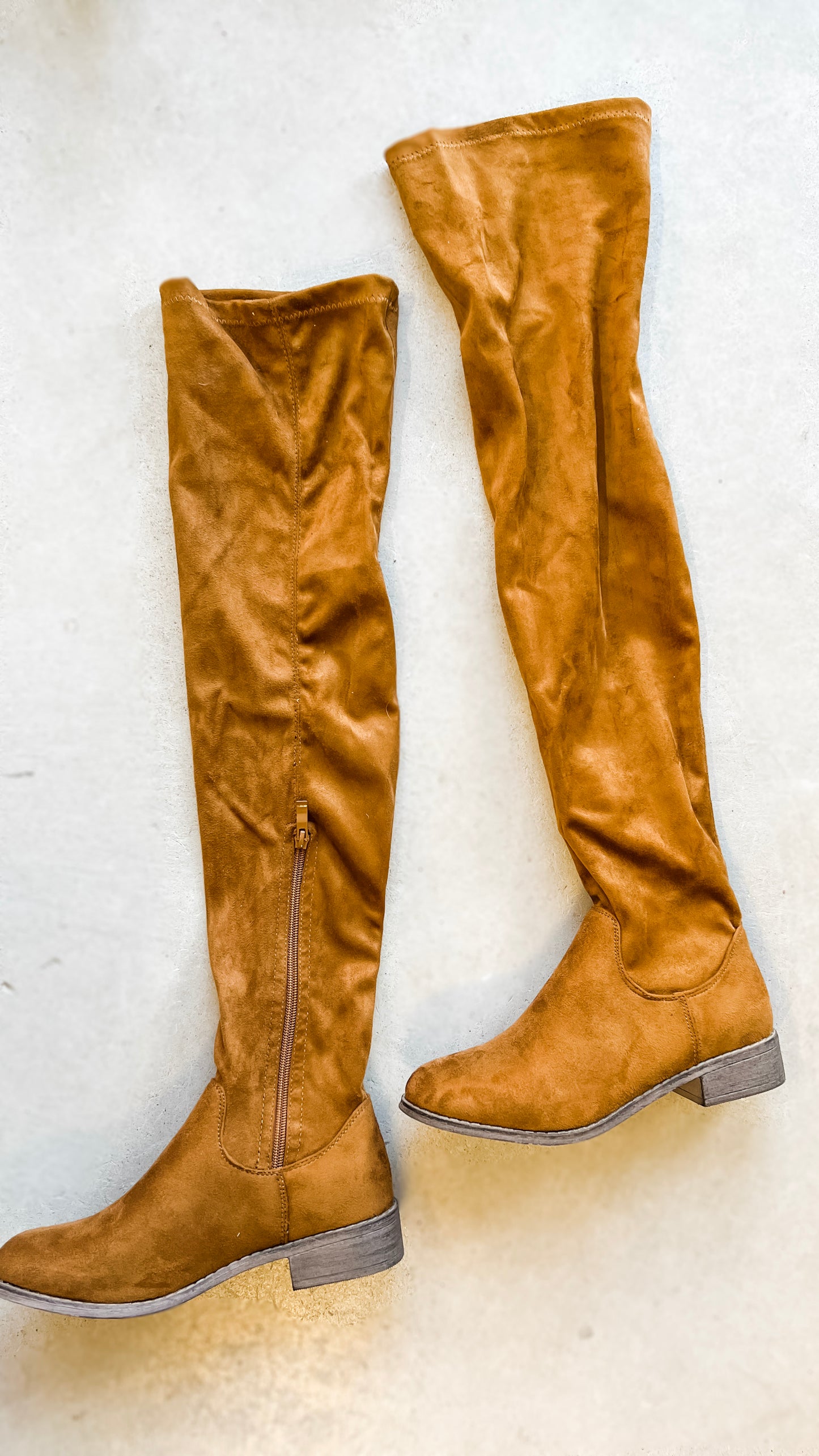 The most stylish and functional faux suede boot to add to your wardrobe. We adore the over the knee look with skinny jeans or your favorite mini dress. These boots are so soft and have a super sturdy low heel. Boots also come in a beautiful taupe color.