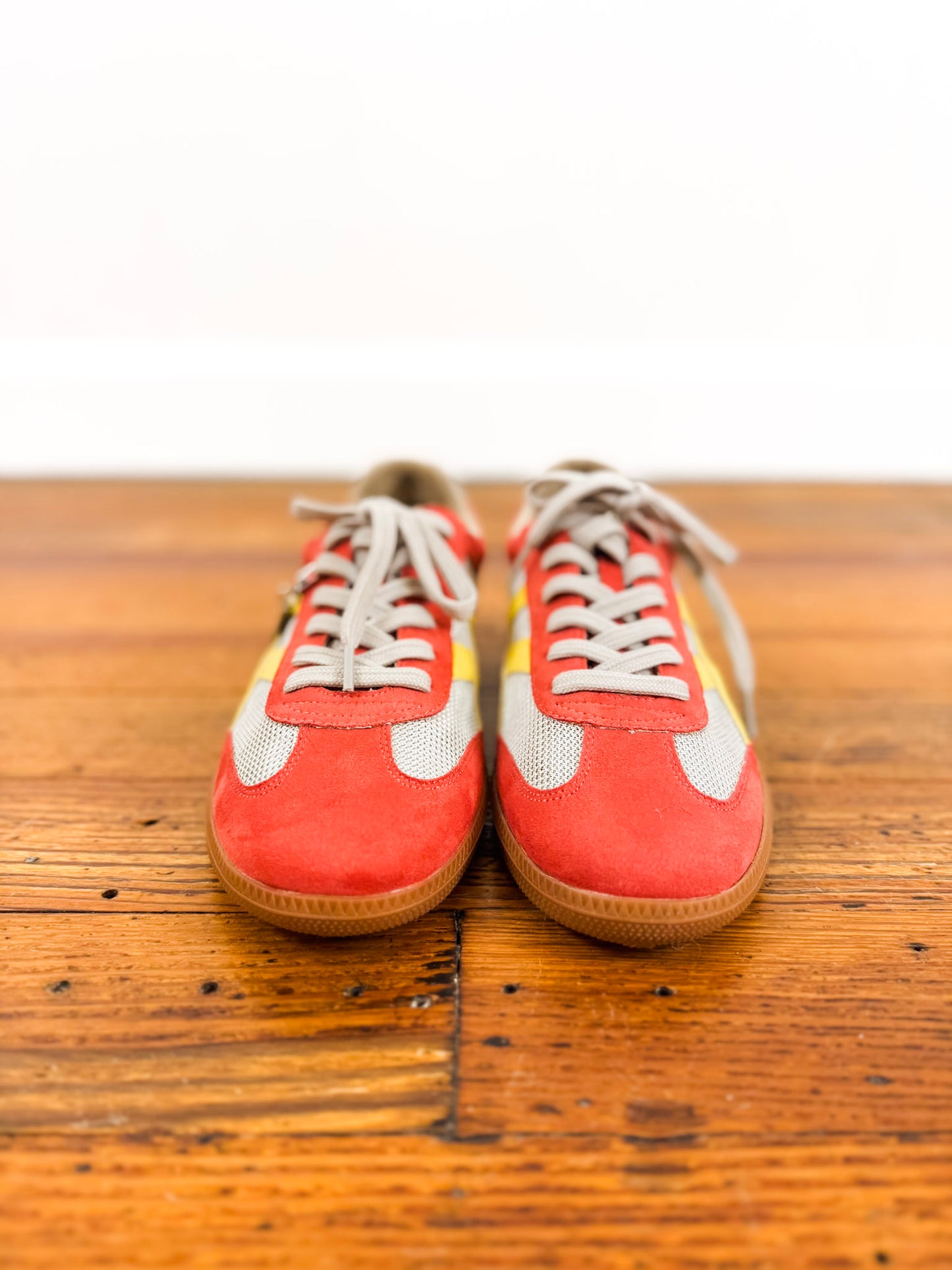 A classic sneaker with a gum sole in the most perfect spring & summer colorway.