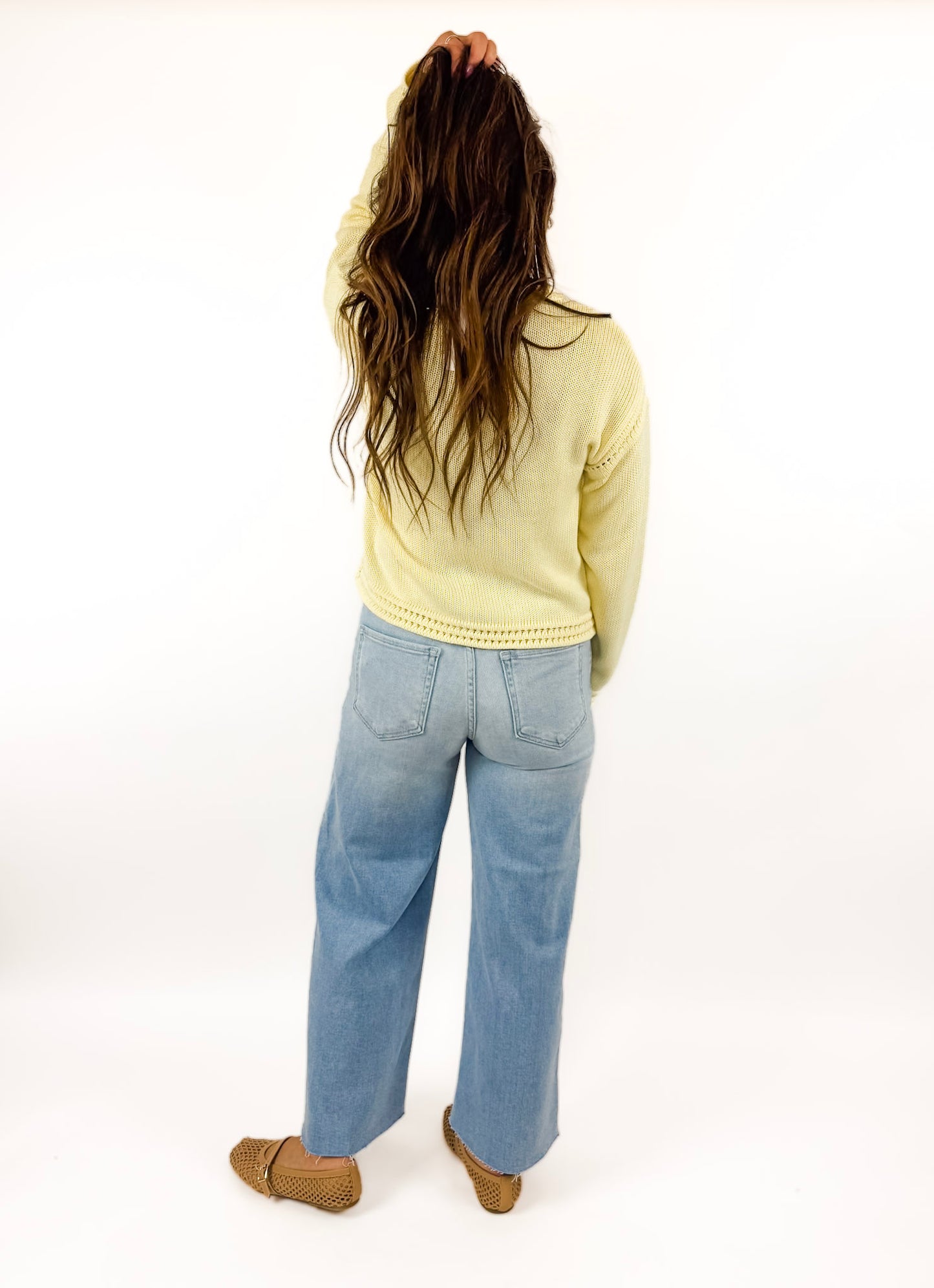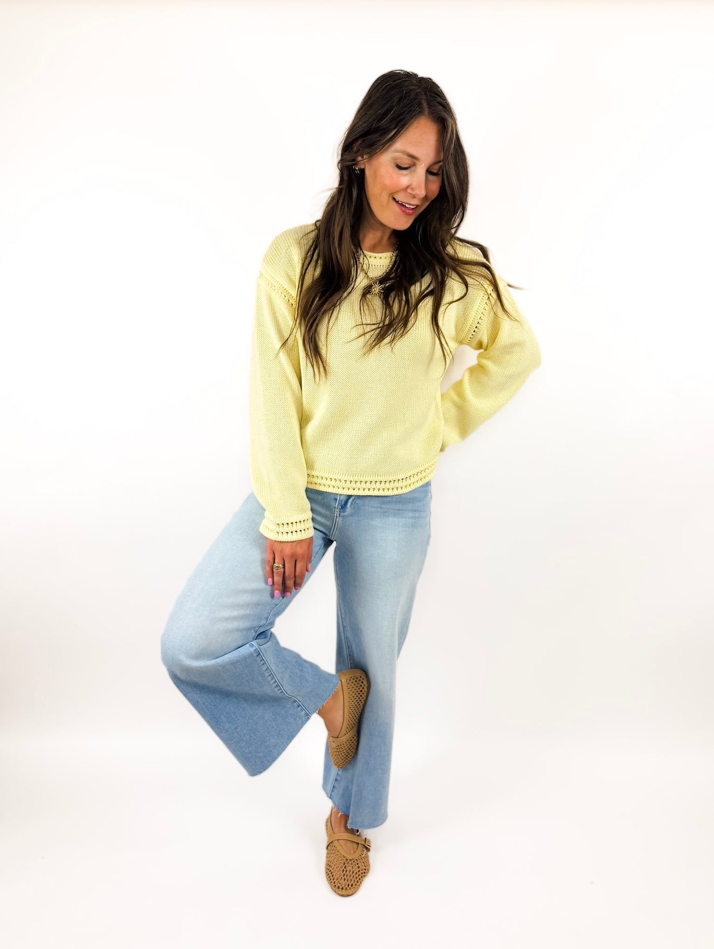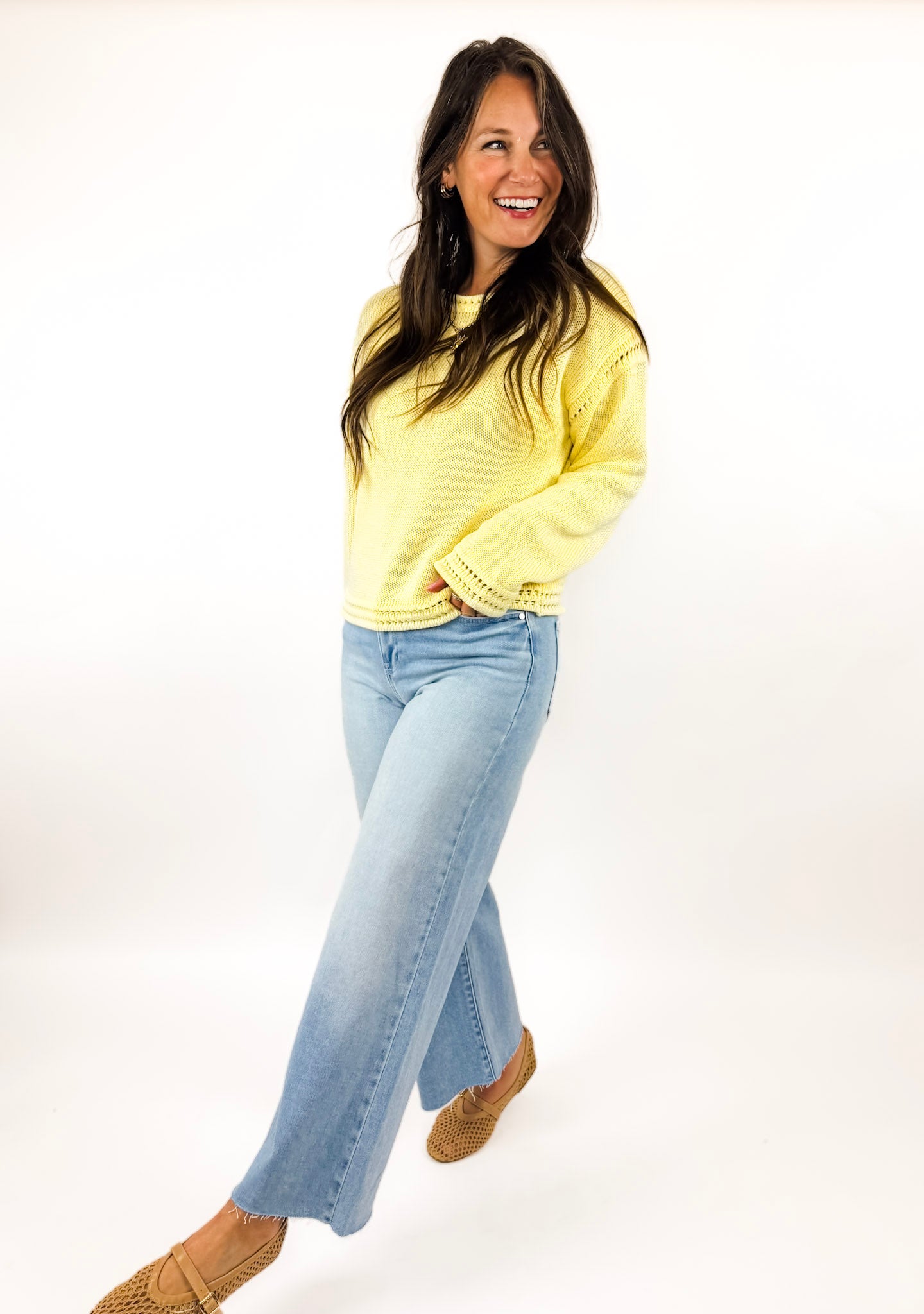 Soft, airy yarns and an easy silhouette give this sweater from zsupply its fresh feel. Wear it solo for a minimal look or layered over your favorite tanks and tees for extra cozy charm. An on trend and happy butter yellow color makes it the perfect item to throw on for a little sunshine.
