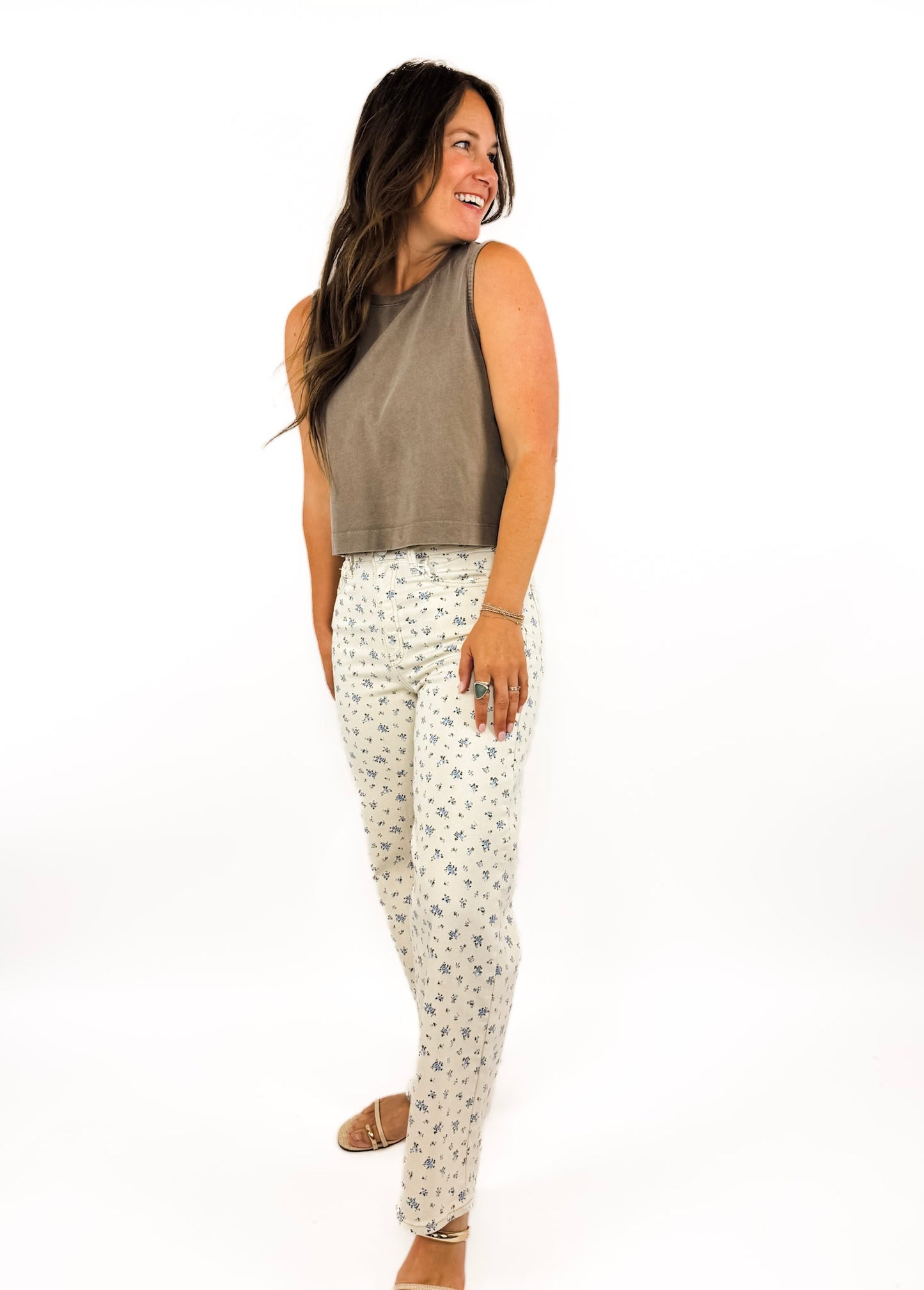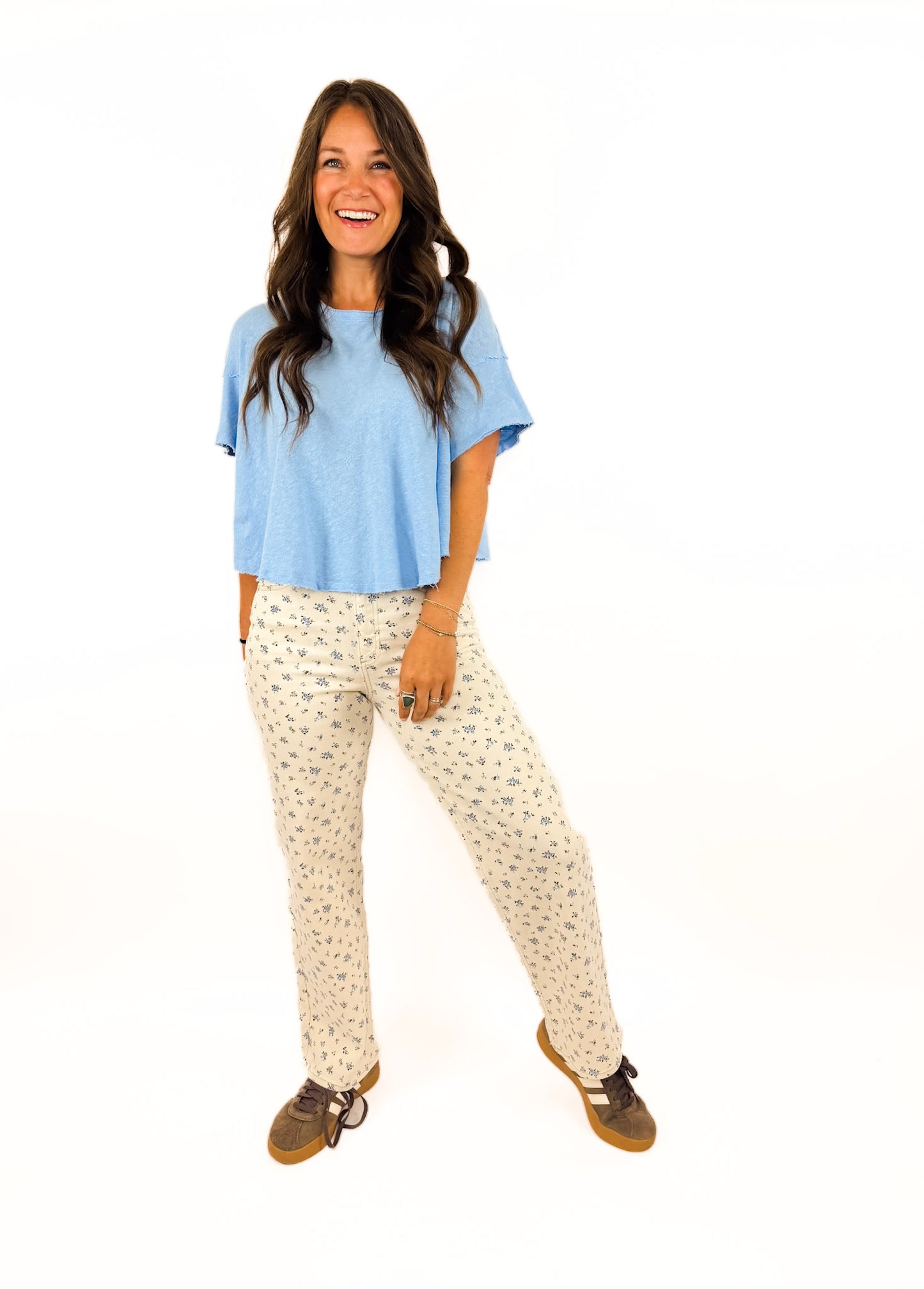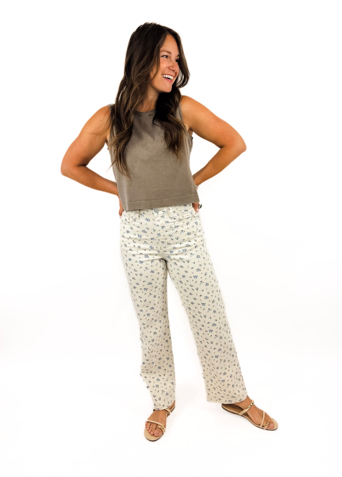 THE cutest pair of denim we've ever seen. From our favorite brand that makes comfy denim, this high waisted vintage straight jean with the cutest floral print is a must for spring & summer. Style it with the sloane tank, camino tee, elsie swing tee, or your favorite basic tank with a denim jacket.