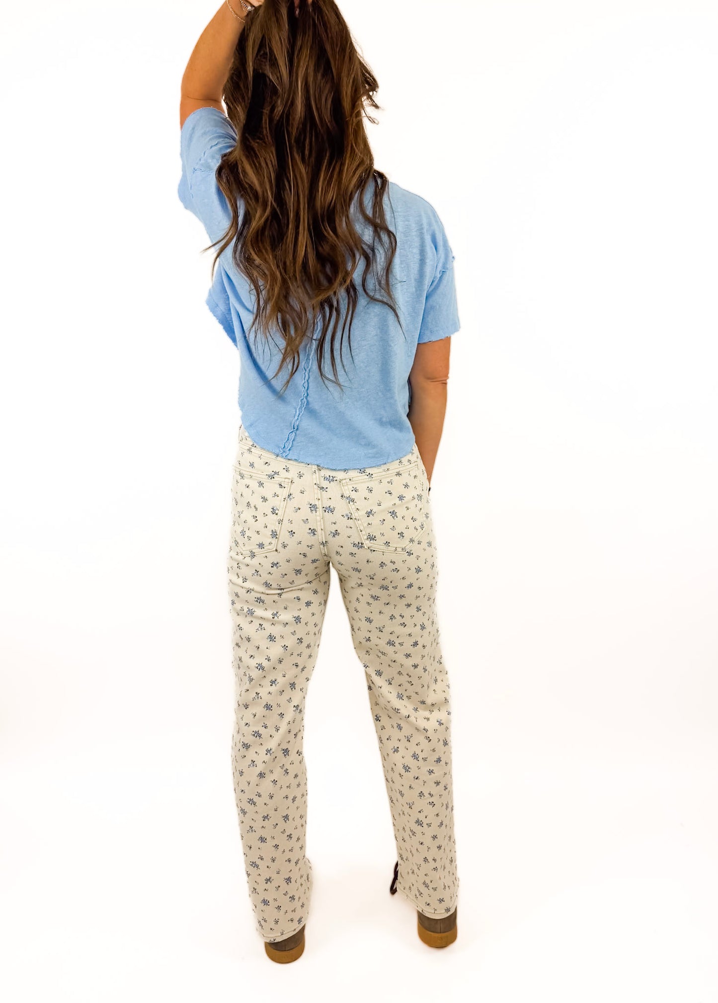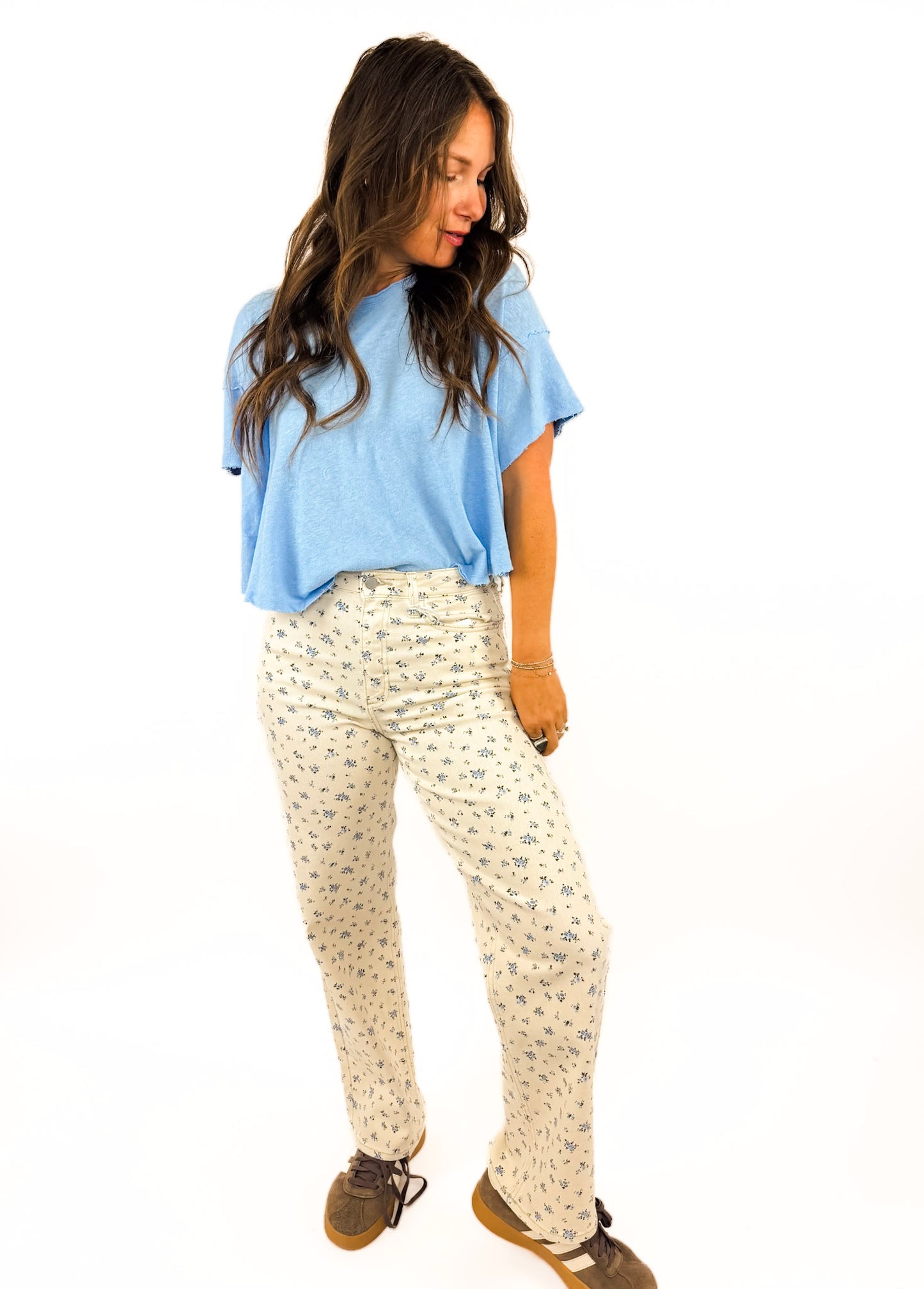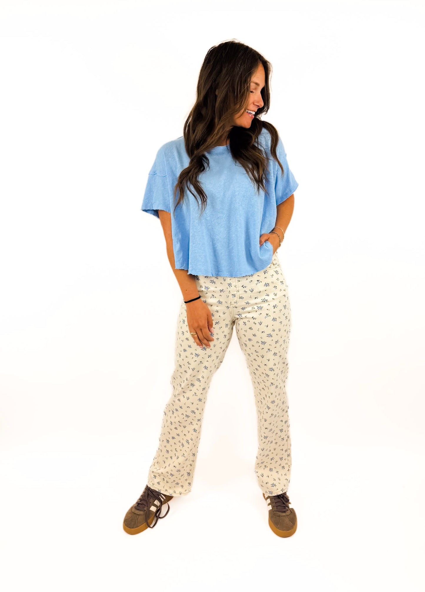 THE cutest pair of denim we've ever seen. From our favorite brand that makes comfy denim, this high waisted vintage straight jean with the cutest floral print is a must for spring & summer. Style it with the sloane tank, camino tee, elsie swing tee, or your favorite basic tank with a denim jacket.
