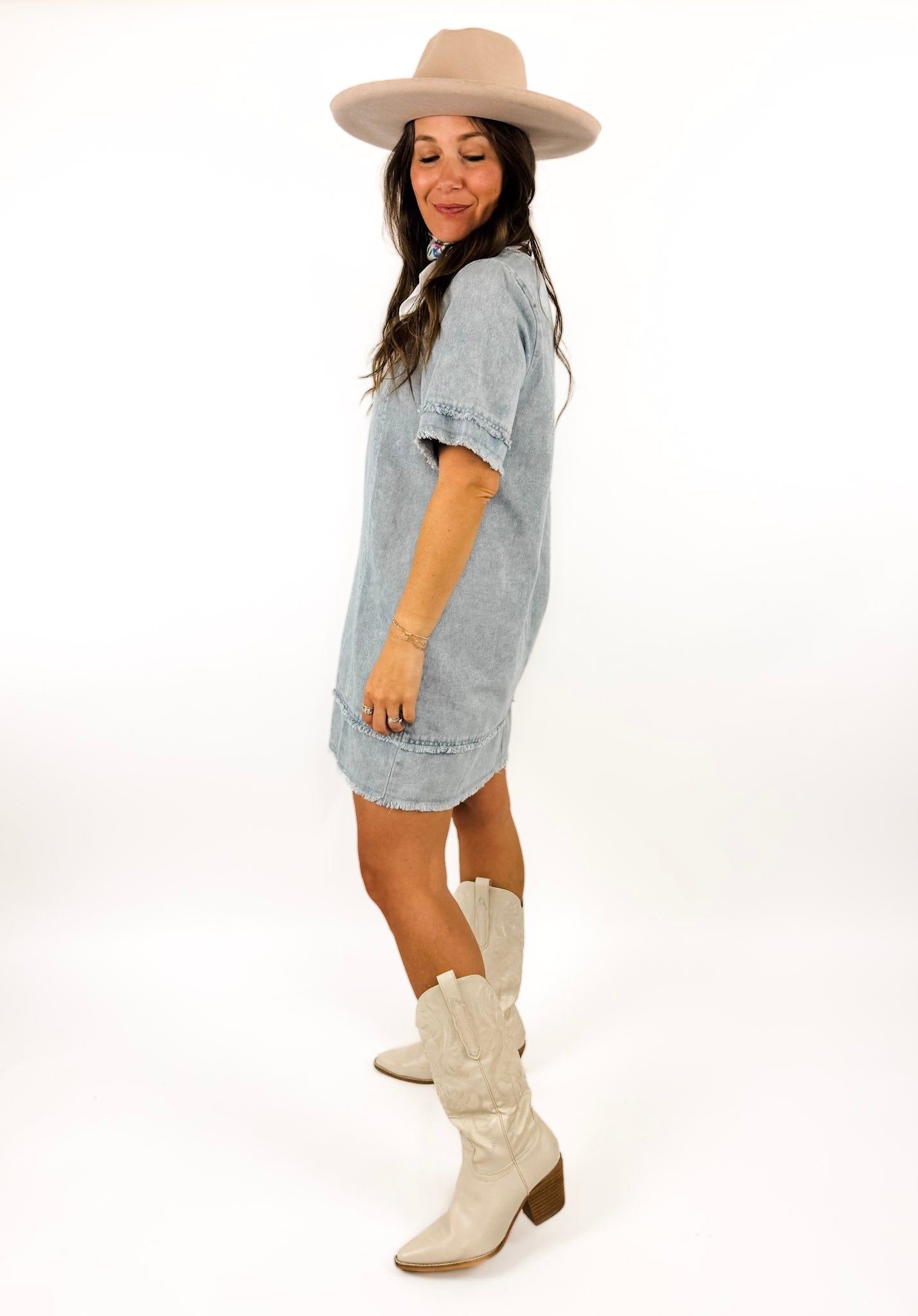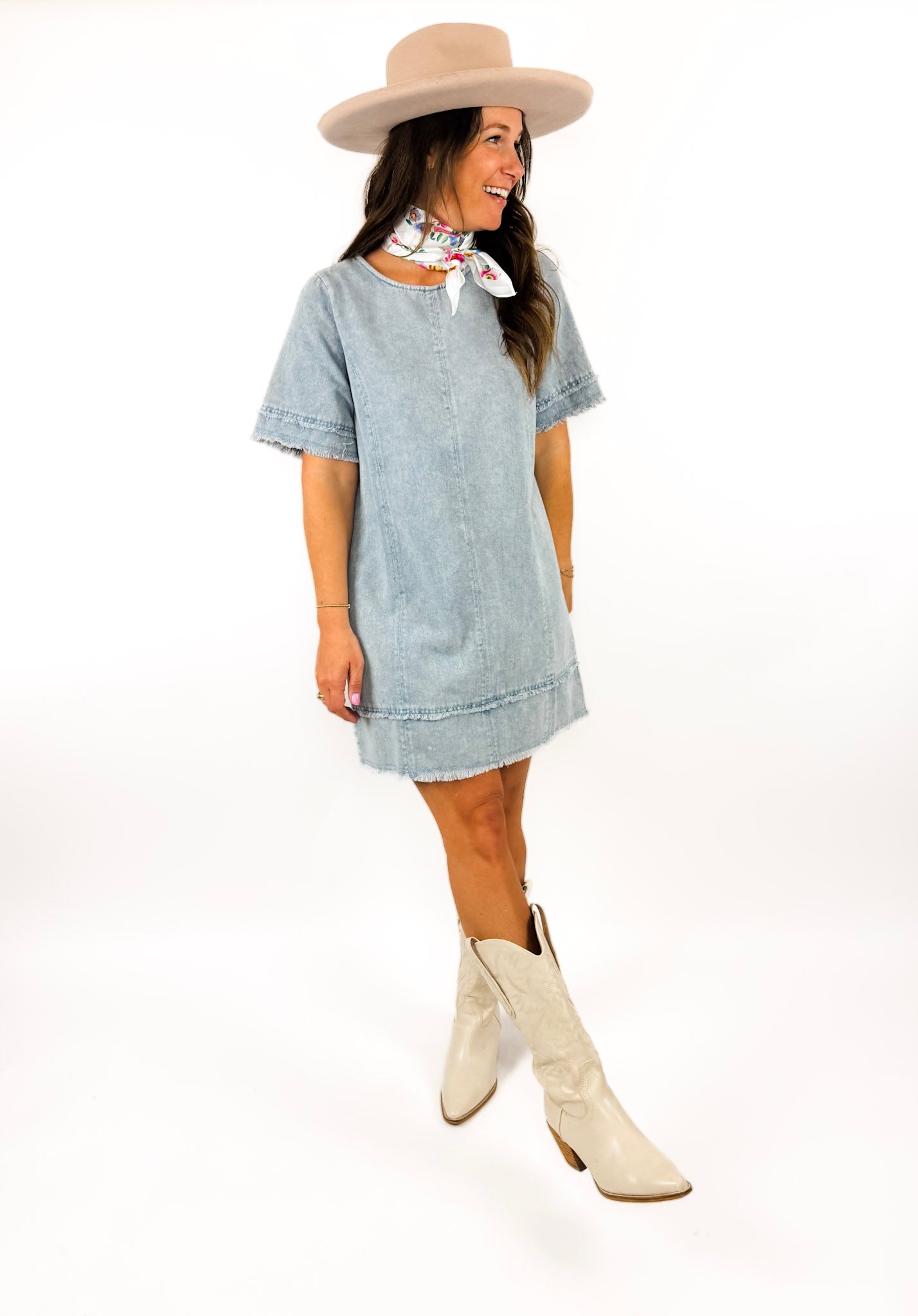 Shift dresses are having another moment this Spring and we love this chambray option. Style it with a western flare or dress it down with sneakers and a baseball hat for a casual look for everyday.