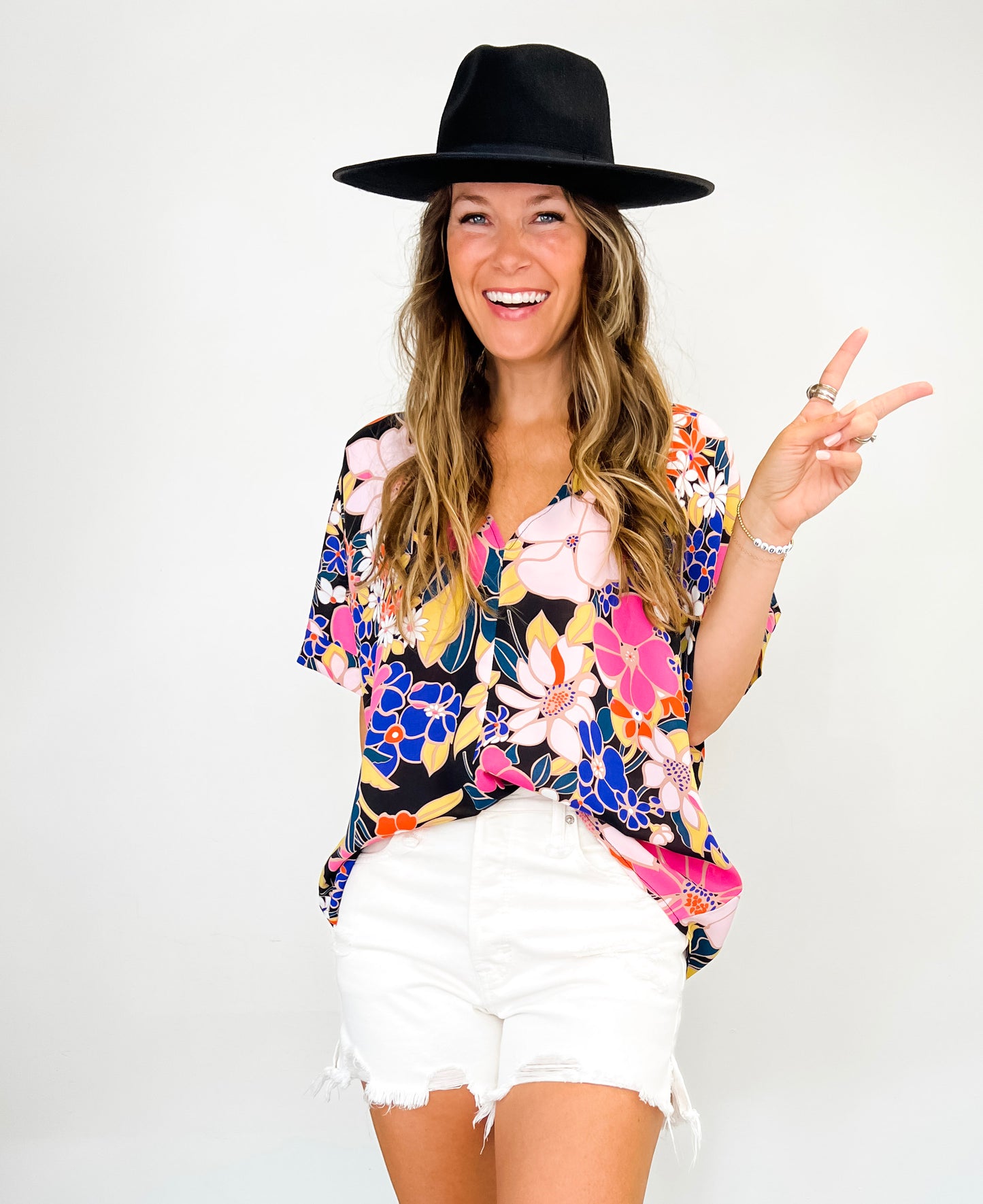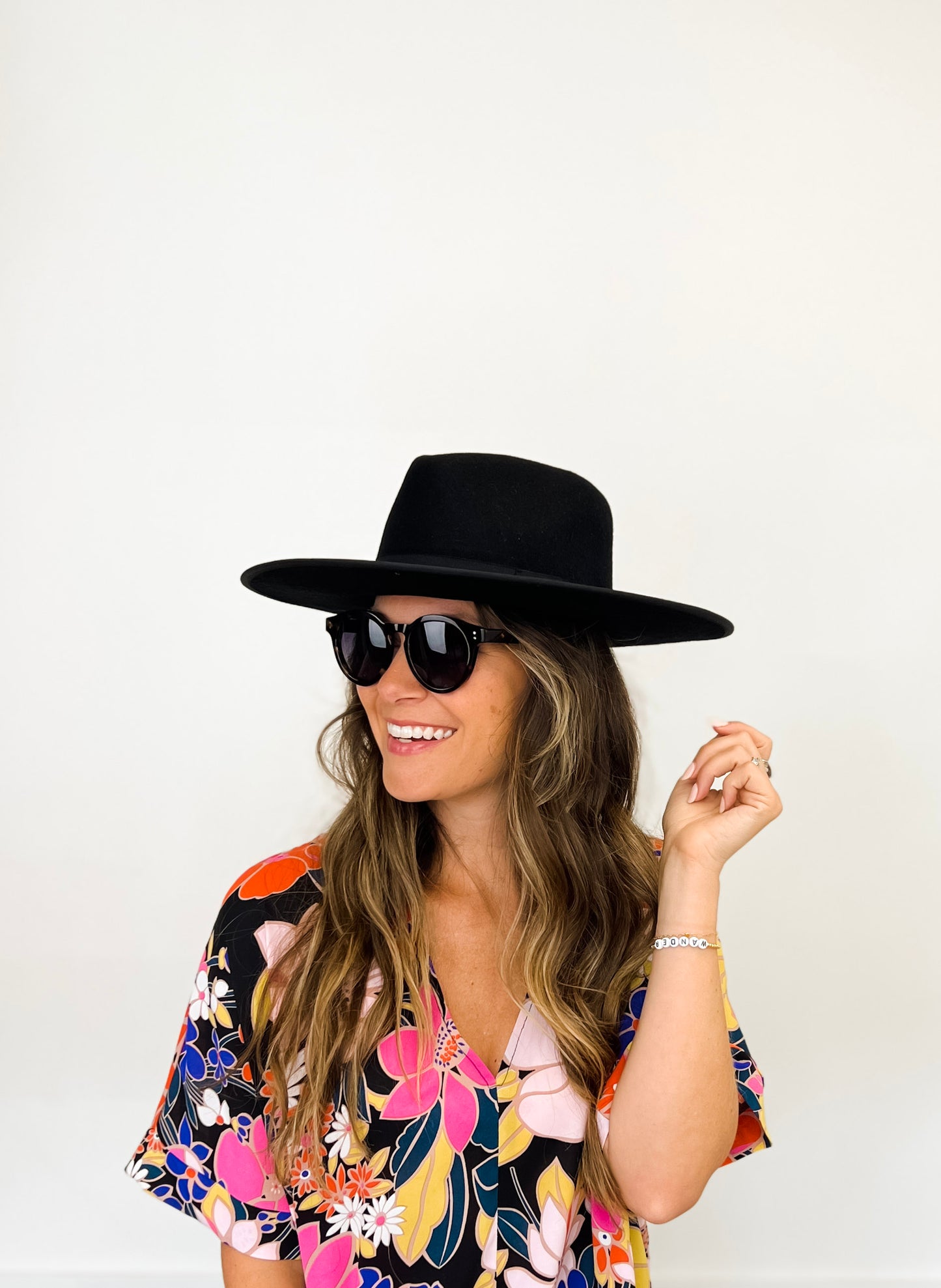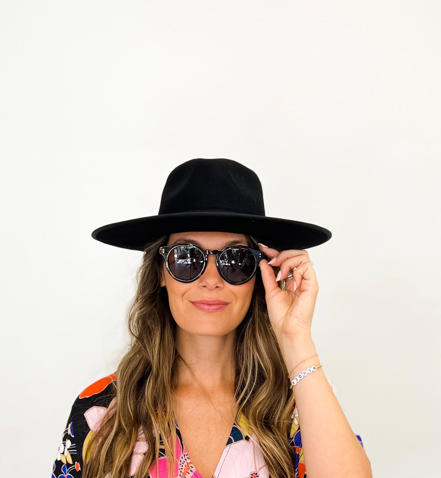 Our best selling clover hat is back in a MUCH REQUESTED color....black! Wear this hat throughout the entire year. Every gal needs a black hat in their collection. This is a rancher/panama style hat with a feminine vibe. Also available in Pecan.