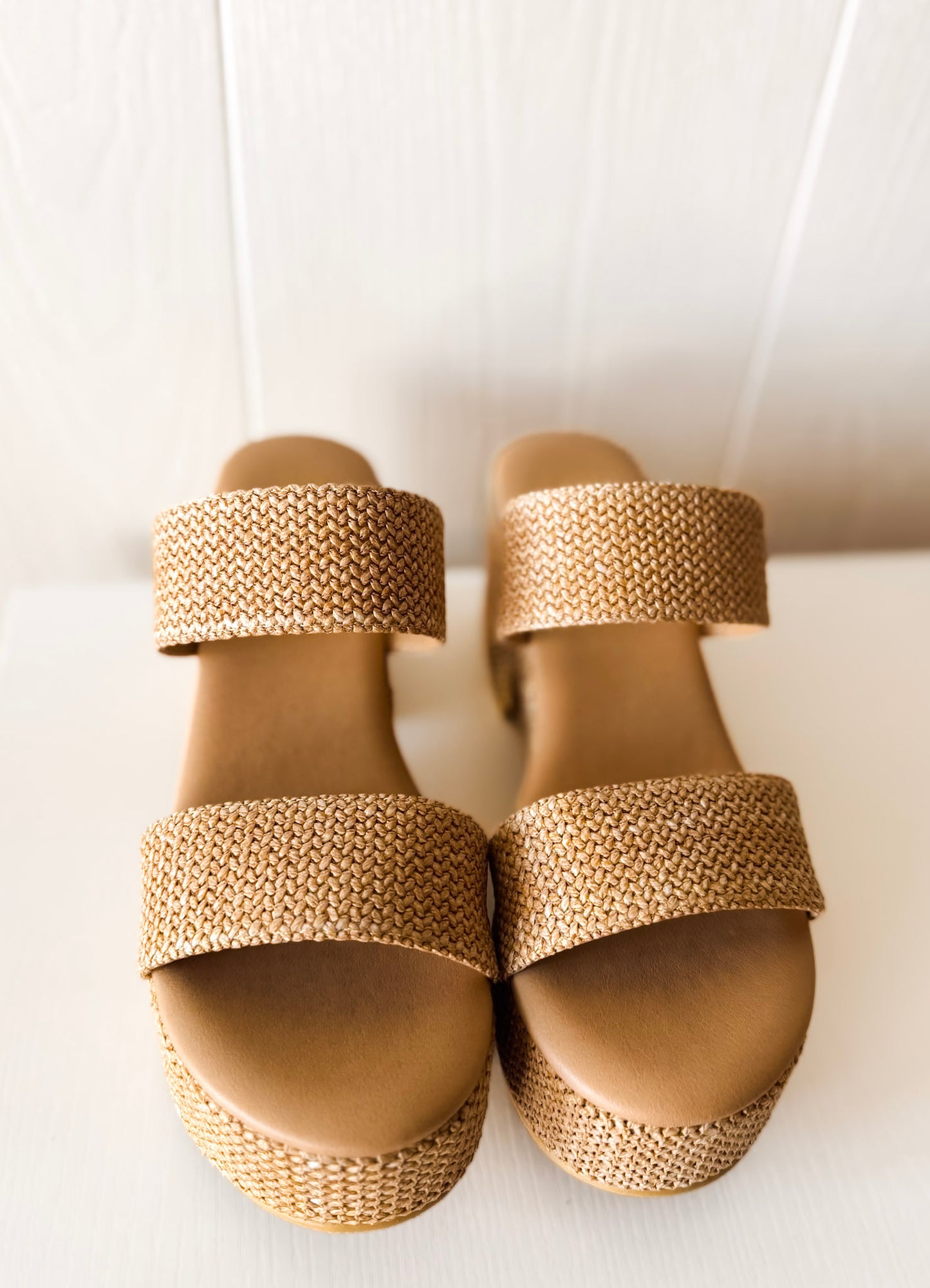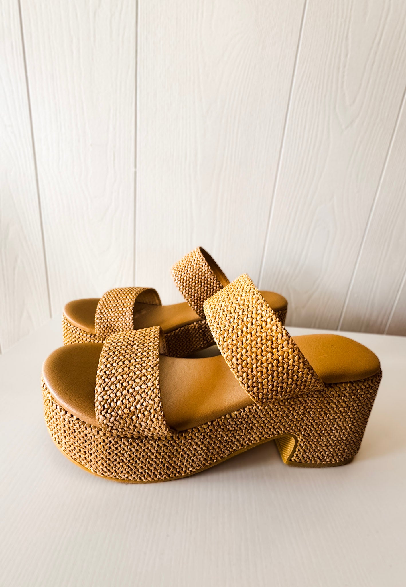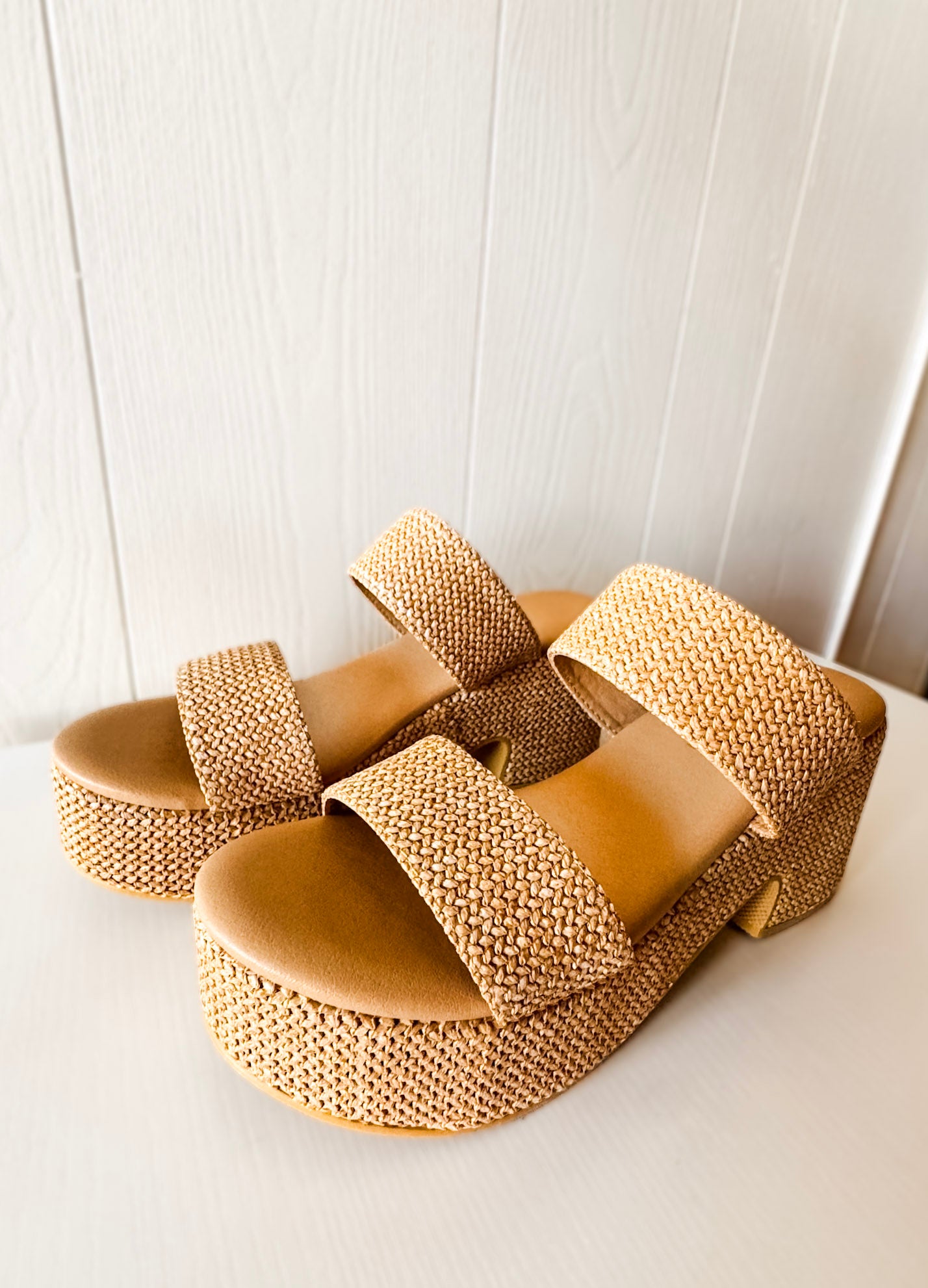The Ocean Ave vegan platform sandal by Matisse highlights rich chestnut raffia straps paired with a textured platform heel for natural, standout style. We've had this style in the past and it's always a hit! This cute and under $50? Say no more!