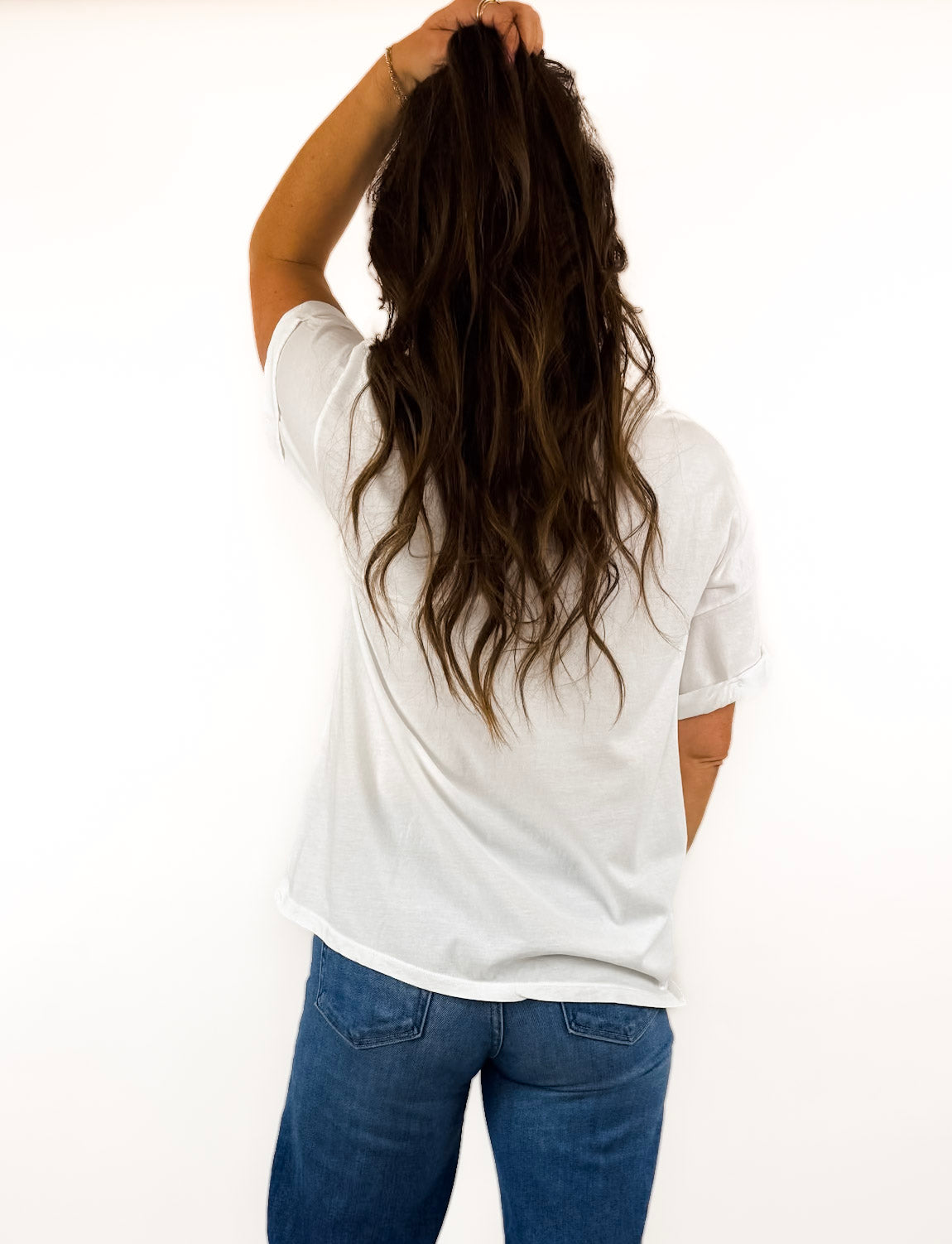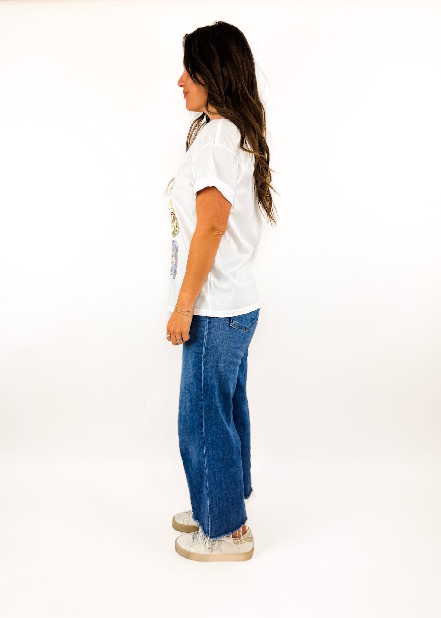 Graphic tees are kind of our thing and y'all love them too! This one with cuffed sleeves and a darling, colorful design is another win.